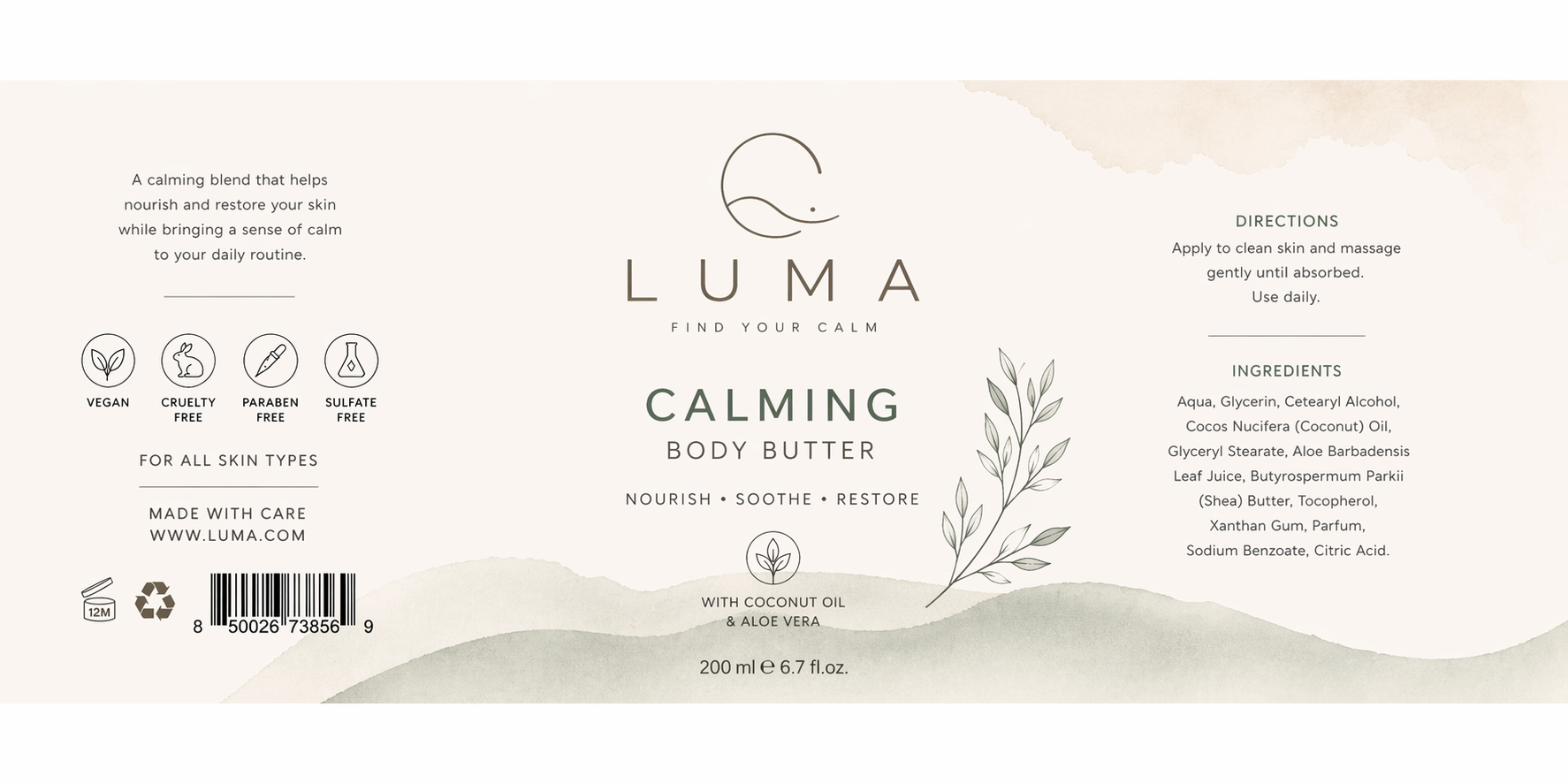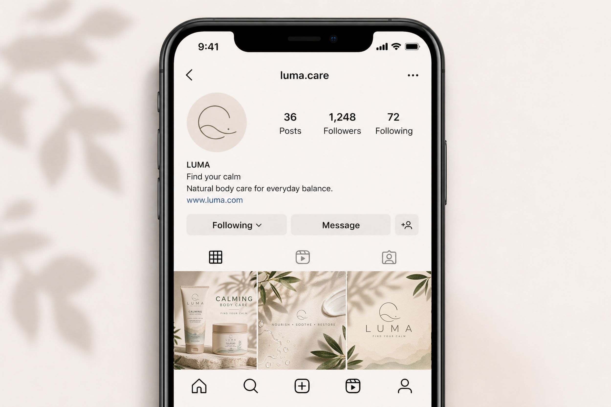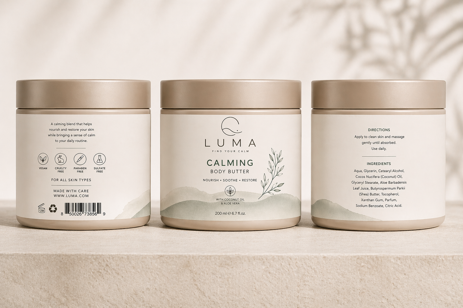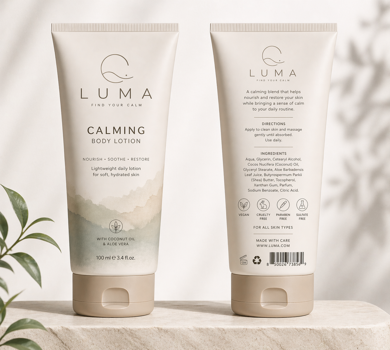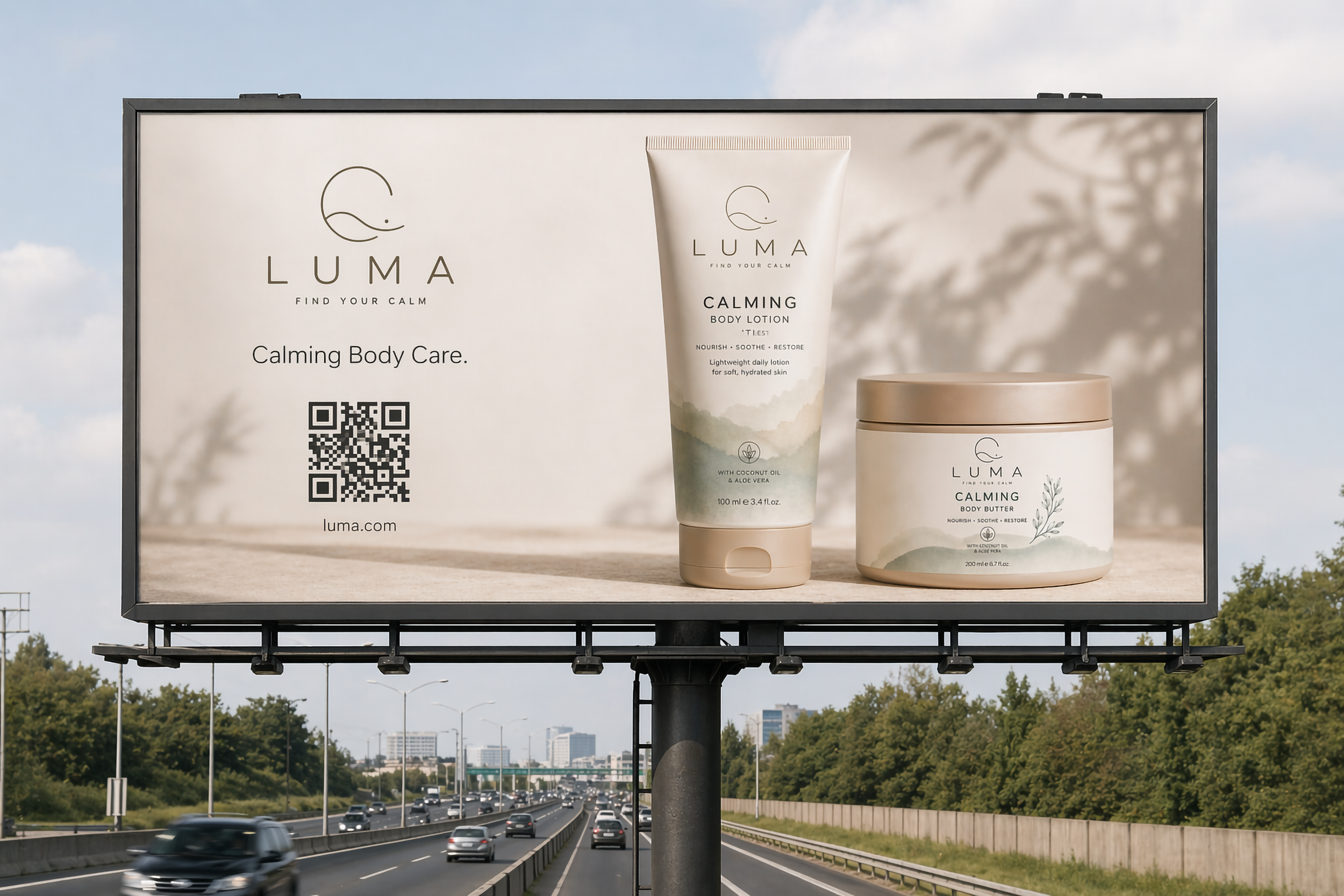 LUMA is a conceptual skincare brand designed to evoke calm, simplicity, and natural care. The visual identity focuses on soft tones, clean typography, and minimal composition to reflect a quiet and balanced aesthetic.